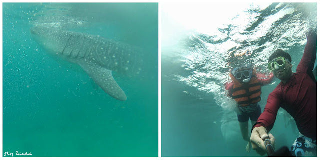 So I've been dreaming of swimming with the gentle giants of the sea. I didn't expect it to be this early. Our driver, Kuya Boyet dropped us at the whaleshark watching site. It was a typical early Sunday morning and tourists are beginning to flock the area. The whale shark's highest visibility time is from 7am to 9am so I recommend to put this activity on top of your itinerary. Interactions are up only until 12:30pm every day. Tourists are briefed at a briefing area. We put on our gears and local fishermen got us into a small banca to the diving site. I swear my heart was beating faster but as I plunged myself in the water, damn, the feeling was incredible. I've seen not just one whaleshark but three, as in three! I swear I panicked when someone shouted, "he's behind you!" and when you turn around, behold, a whale shark with its opened mouth was a few feet away from you. Of course he was harmless, he was just catching some krills fed by the fishermen to keep them in the area. With its wide mouth as wide as your two-arms stretched, they were quite cute. It was a wonderful experience that I'd remember until the day I'd die.