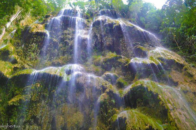 After about an hour car-ride from Tumalog Waterfalls, we reached Aguinid Falls. Frustrated with the cancelled canyoning, we opted to conquer Aguinid Falls. Aguinid means to "slide" down . The falls itself is a five-tiered waterfalls which means you have to climb a few rock walls , rock boulders or even huge trees to reach the main falls. It is recommended to always follow your guide when trekking and climbing the rock walls. The rocks are made of limestone so it's not that slippery but there are some areas where your guide would tell you not to step in. Remember, the whole stretch of the hike is made up of water streaming, hard rocks and high walls without a rope for a guide or support. No need to rush too, the guide will tell you to climb up slowly and enjoy every moment of your little victories. The first two tiers is exciting enough to make your heart beat faster. Your knees begins to feel your weight as you climb the water-streamed walls of the third and fourth tier, where you can swim on its clear basin of icy water. The last tier was the amazing one. You can climb up to the sides of it and let the strong waterfalls provide you massage and relaxation.